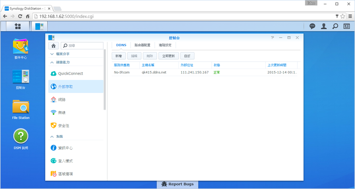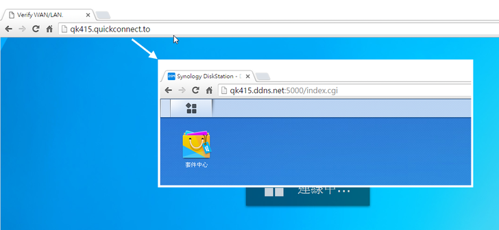 設定完成後,未來若使用者在瀏覽器輸入http://QuickConnect.to/qk415,則會自動轉址到http://qk415.ddns.net:5000/,十分方便!