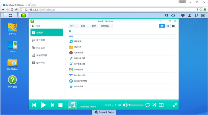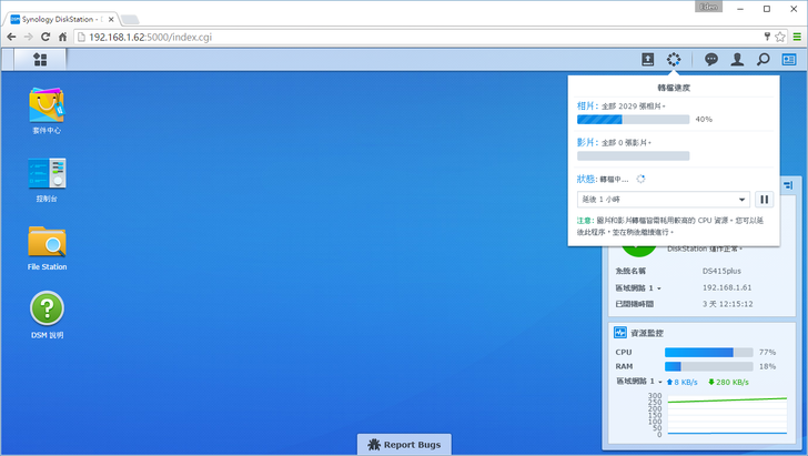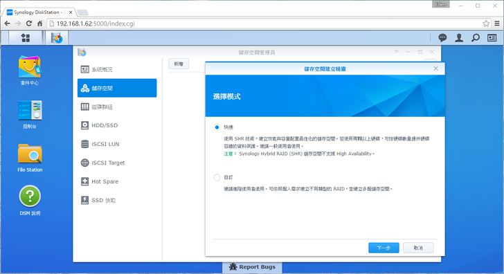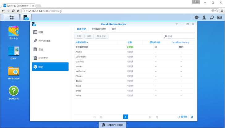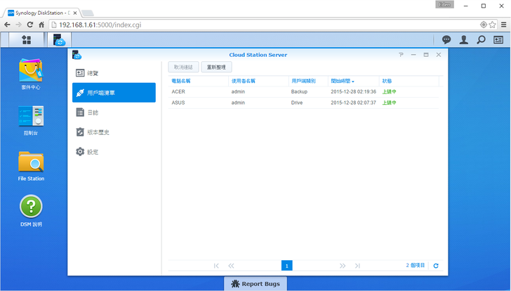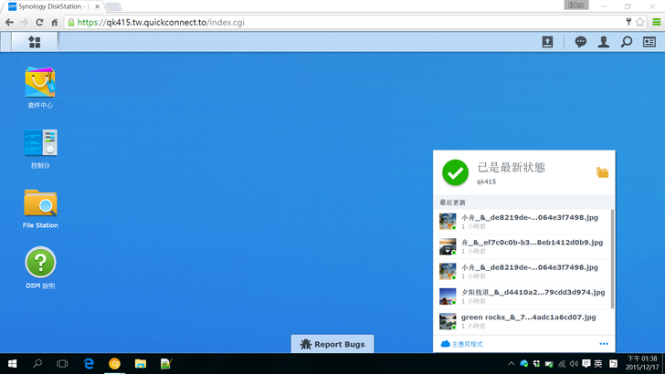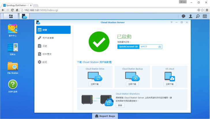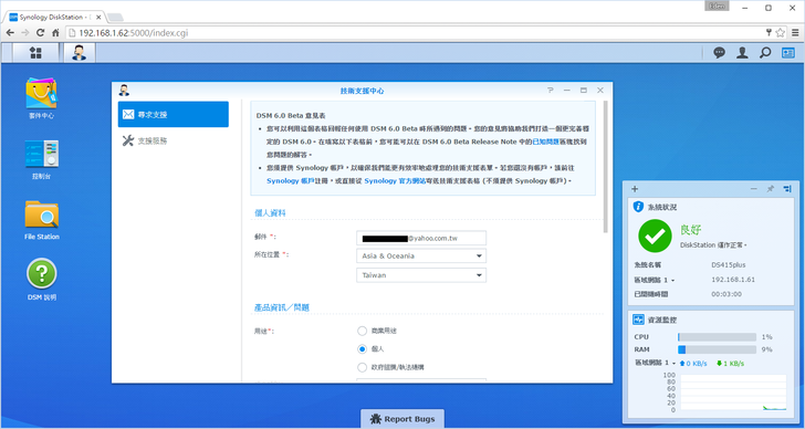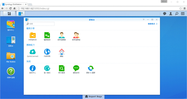 新的DSM 6.0在介面上沒做太大的改變,不過下方有一個"Report Bugs",讓有發現問題或疑問的使用者在第一時間可以做詢問和反應。