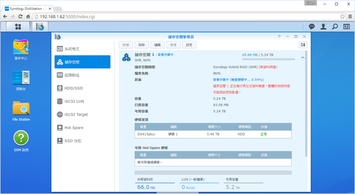 此時NAS會開始建立Btrfs檔案系統,大約須要數個小時。