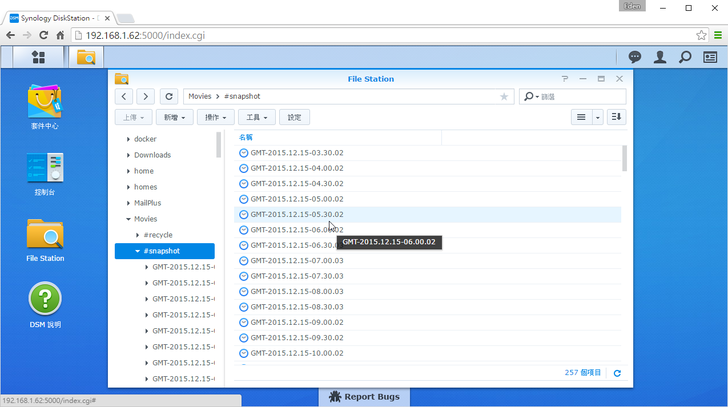 而快照的檔案可以至File Station → #snapshot 查看,系統會幫你用"時間"顯示出所有的快照,要翻找也較方便。