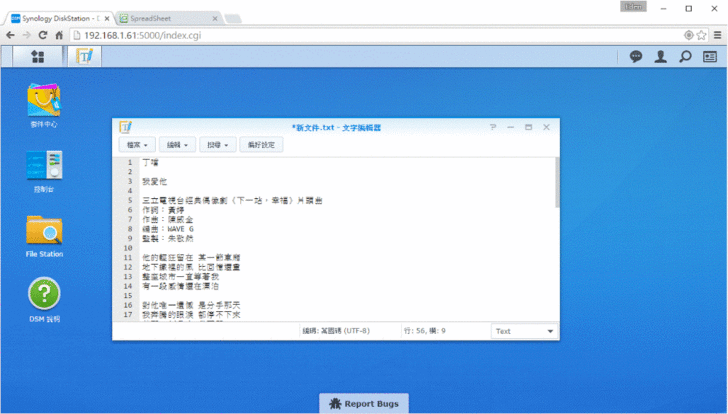 DSM有內建文字編輯器,不過這可不是Windows系統內建的"記事本"喔,而是類似notepad++軟體,提供了一些額外的功能。例如:常常我們會下載到簡體字的文章,看了真的很不舒服,這時候文字編輯器提供簡轉繁or繁轉簡的功能。
