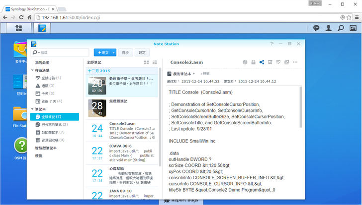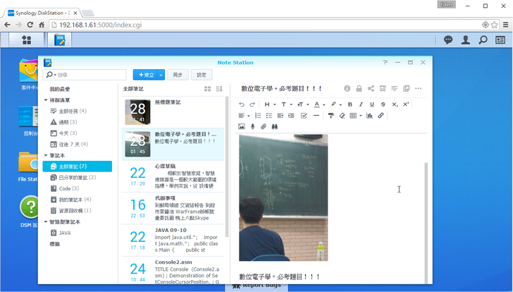 除了使用手機瀏覽筆記,我也可以利用DSM的"Note Station"。