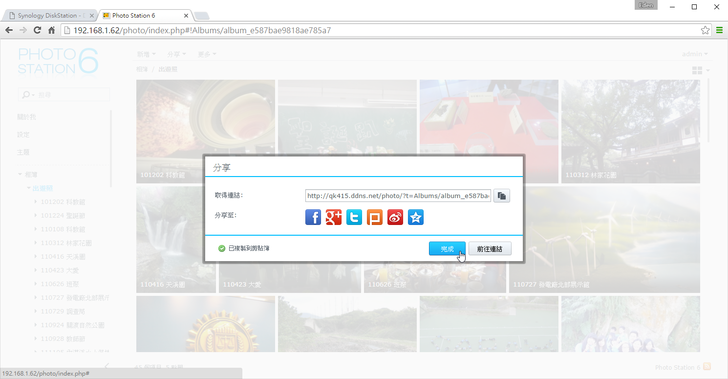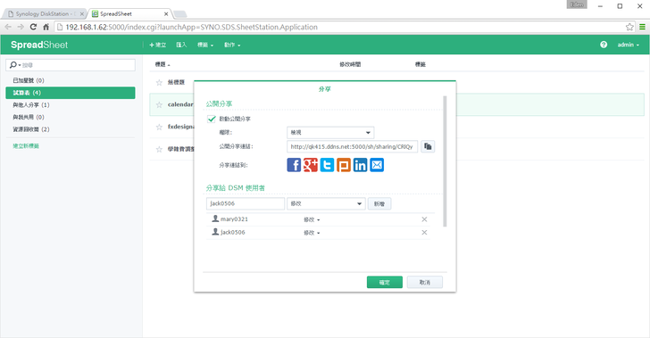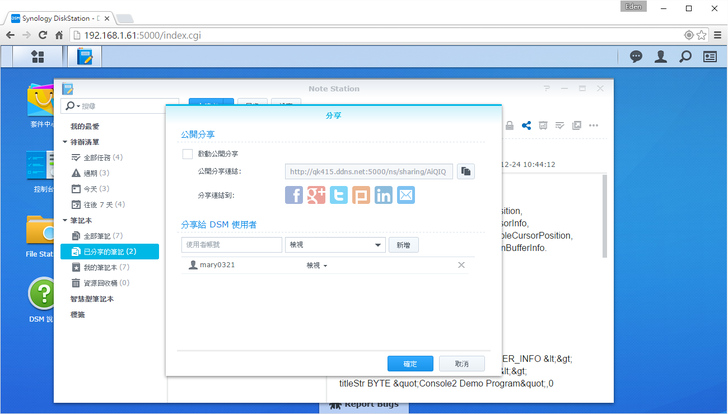 分享的方式功能介面和之前的都一樣,主要就是有公開和DSM使用者分享兩種(權限有檢視和編輯)。