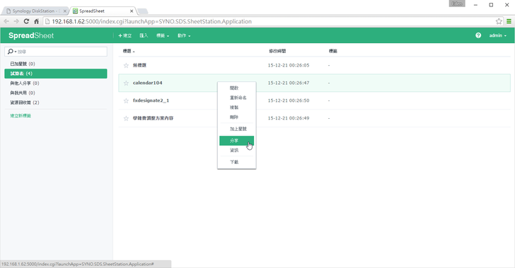 建立試算表後,對該文件點右鍵 → 分享,即可分享試算表。