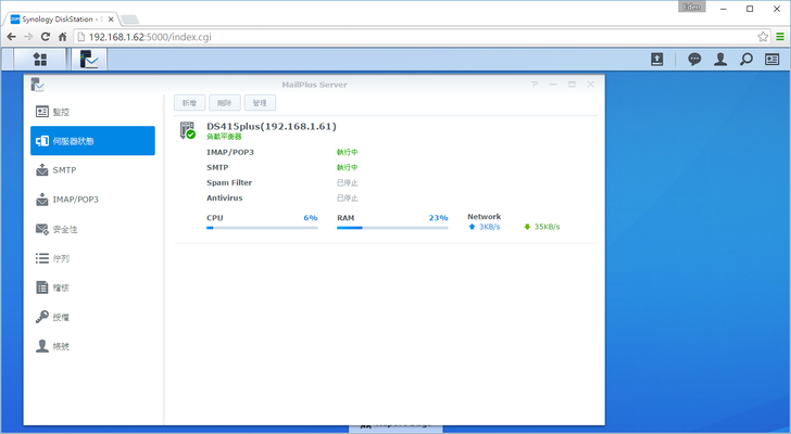 設定完成後,我們看一下伺服器狀態頁面,這時郵件伺服器已經開始運作了唷!