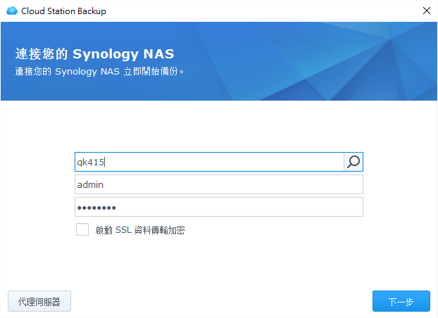 將Cloud Station Backup的軟體下載下來並安裝,開啟程式後會出現下圖畫面。