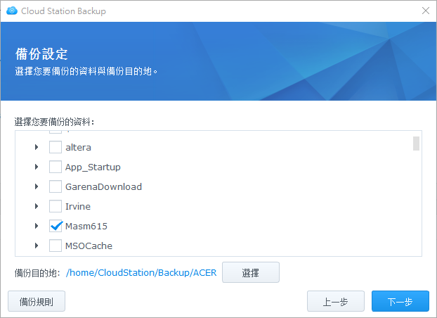 選擇要備份的路徑,可以複選。