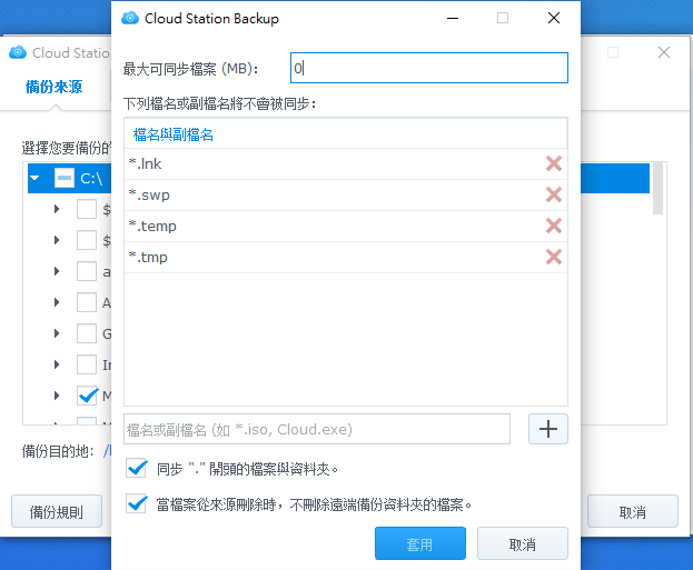 說到備份,其實不外乎就兩種,第一就是將電腦中某些的資料備份到NAS上,而第二種是將NAS的某些資料同步到電腦上。聽起來好像差不多,不過前者偏向於為了資料安全性而備份,後者則是為了可以隨時同步NAS的個人資料夾(方便到哪都能存取)。剛好Synology為了這兩種功能個寫了一個應用程式,分別是Cloud Station Backup和Cloud Station Drive。