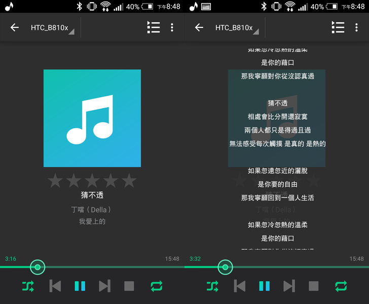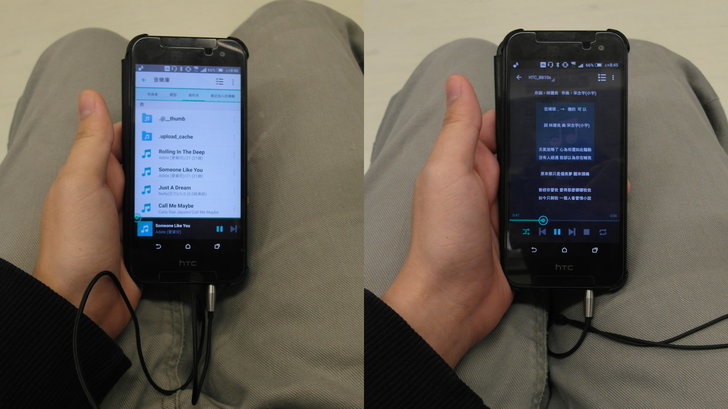 在捷運上,使用「DS audio」聽音樂,還有歌詞顯示可供哼唱,隨時隨地都是你的卡拉OK時間~~