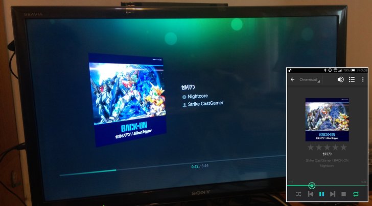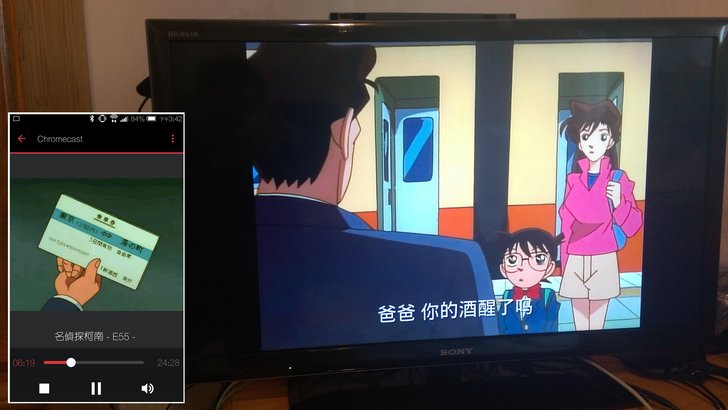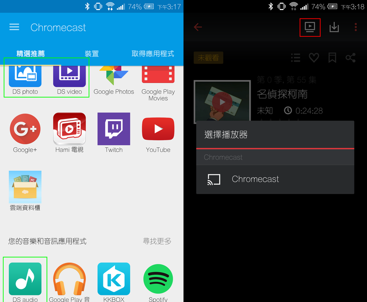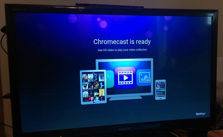 不過上述的多媒體串流僅限在"區域網路"內,且說真的電視的播放介面和功能都太簡陋了。假如朋友想在家中將NAS串流至電視上播放,建議可以購買Chromecast,利用手機操作欲播放的影片/音樂/相片,就能串流至電視上了!下圖以DS video為例,只要該app右上角出現電視的圖示,即可進行電視投影。