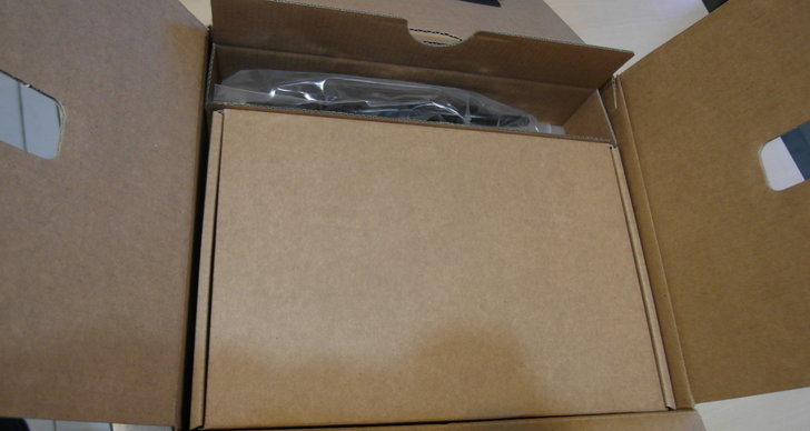 打開箱子上蓋,首先看到的是電源線以及產品配件盒,NAS主體則是放在下面。