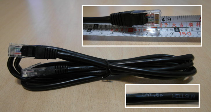 網路線為Cat.5e的線材規格,長度約1.5公尺。