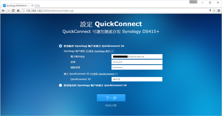 第一步先輸入QuickConnect ID和使用者帳密。