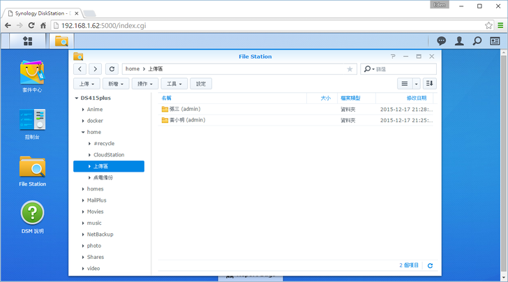 回到建立檔案請求的資料夾,每個資料夾代表者上傳檔案時輸入的名字,且後方括弧會寫出是哪個DSM使用者建立的檔案請求。