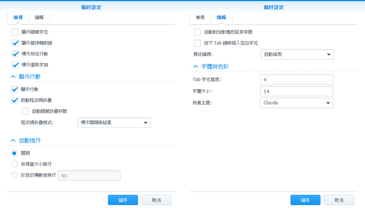 在偏好設定的部分,有一些功能如自動換行、顯示行數、字體大小等等。