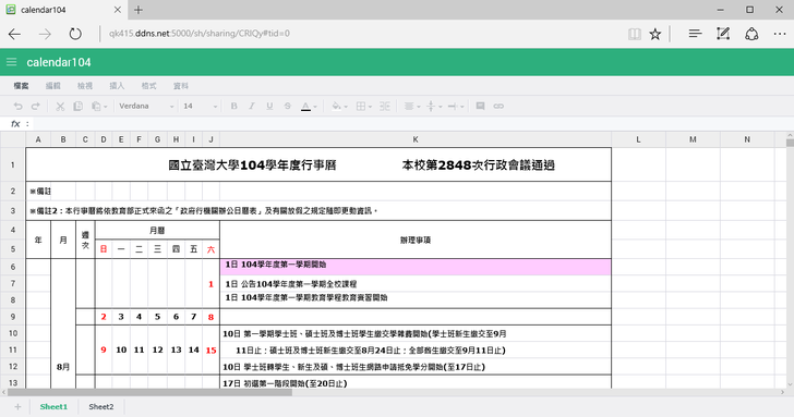 進入SpreadSheet後,此試算表會出現在"與我共用"欄位。