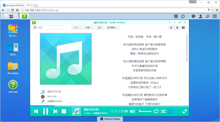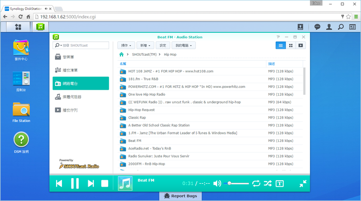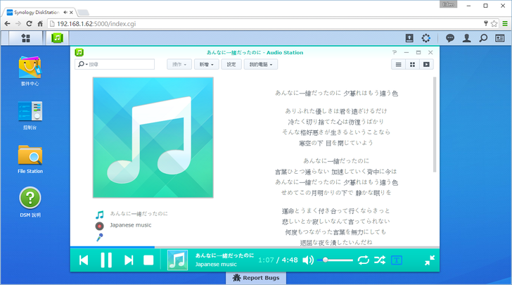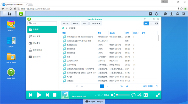 這時打開"Audio Station",記得先將輸出裝置選好(NDZ-03-GA)。音樂開始播放的時後,聲音會直接從藍芽喇叭輸出。