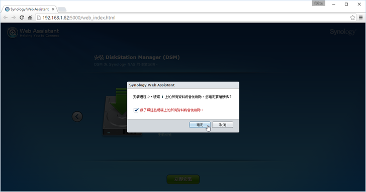 安裝DSM(DiskStation Manager)之前,須先將硬碟上所有資料做刪除。