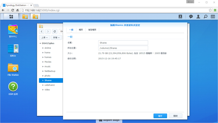 接著將檔案上傳到有開"檔案壓縮"功能的Shares共享資料夾,可以看到實際檔案大小還是21.79GB。