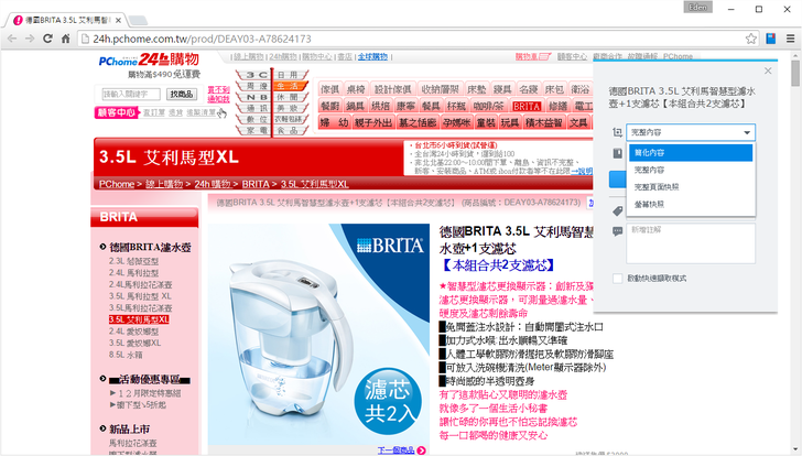 Synology Web Clipper擁有四種截取功能:簡化內容、完整內容、完整頁面快照、螢幕快照(若是開啟電子郵件,就會有"電子郵件內容截取"功能)。舉例來說,我如果要推薦家人這款濾水器,我可以利用"完整頁面快照",並將筆記分享給家人;而若是超商的繳款代碼,我可以利用"螢幕快照"