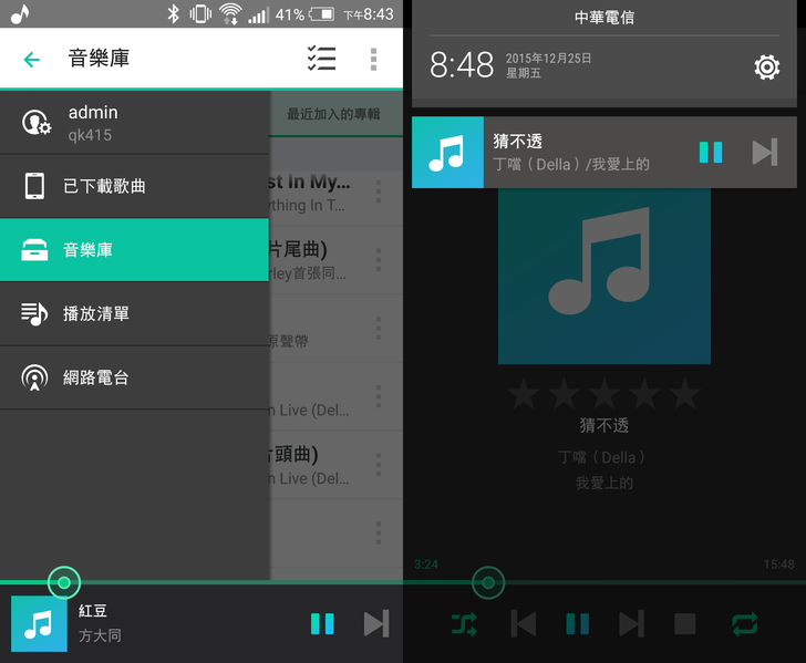 音樂串流的介面簡單大方,有專輯封面和音樂歌手、專輯等資訊。