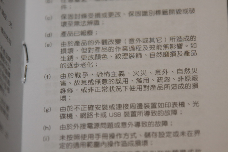 看了一下說明書,在保固條款那看到滿有意思的一條,我想若有因為戰爭損壞等,應該也不會找廠商賠了吧,命還在就好了,其他都不重要了,就像上次恐佈攻擊說某家手機幫人擋了子彈的新聞一樣,太威了!