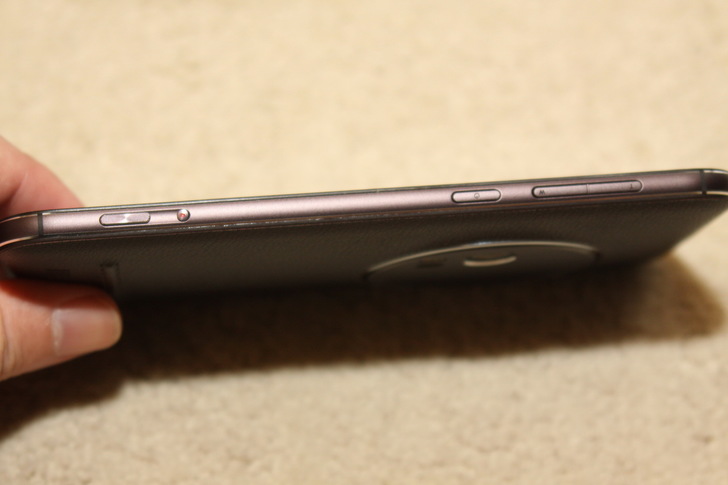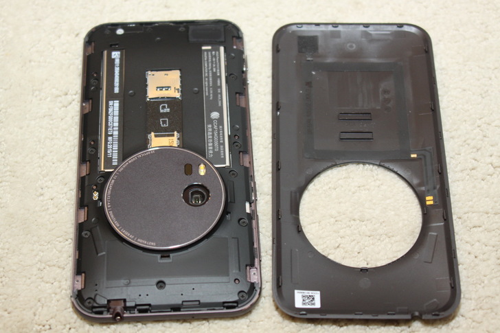 拆開背蓋囉,看網路上有人說明這些配置了,有NFC、SIM卡與記憶卡插槽,還可以看得到電池,不過電池並無法更換,聽說……真的是聽說啦,好像是為了薄機身所做出的決定,要是為了能更換電池,那體積會再加大