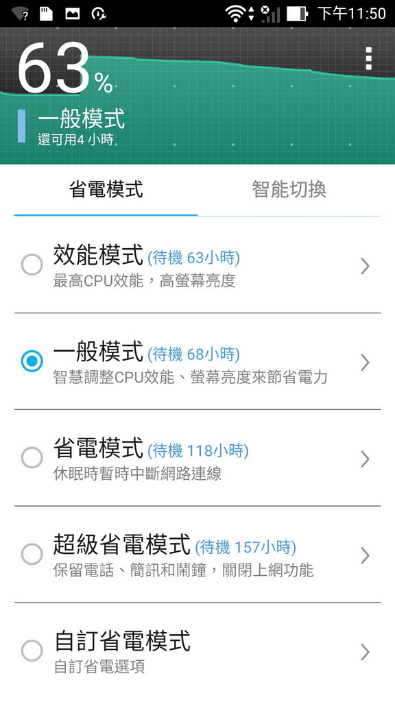 華碩的省電模式設定,可以依自身使用達到最佳化,快沒電時用超級省電模式真的不錯!