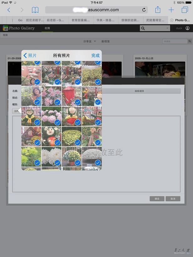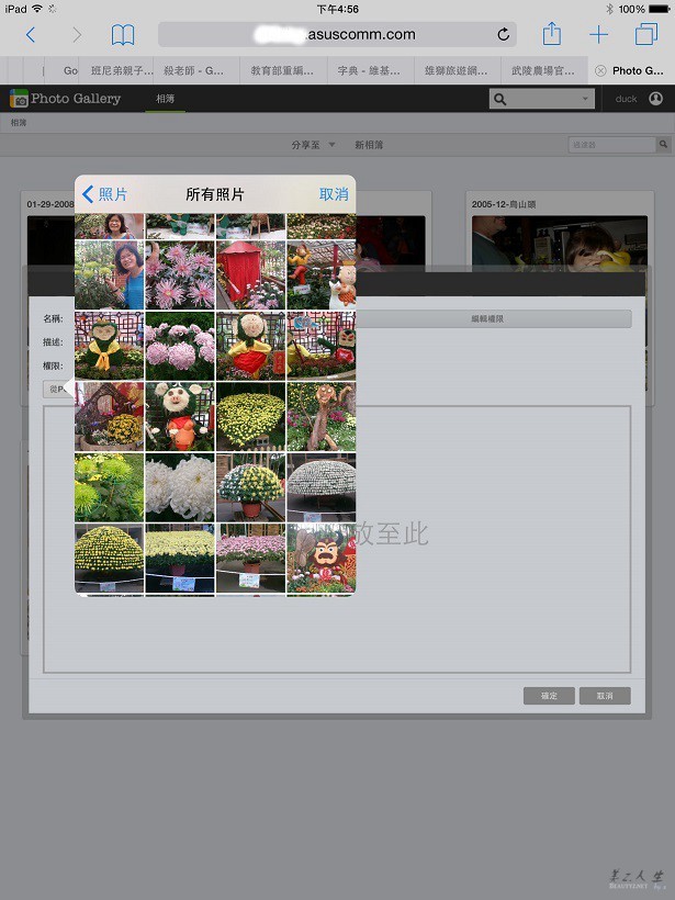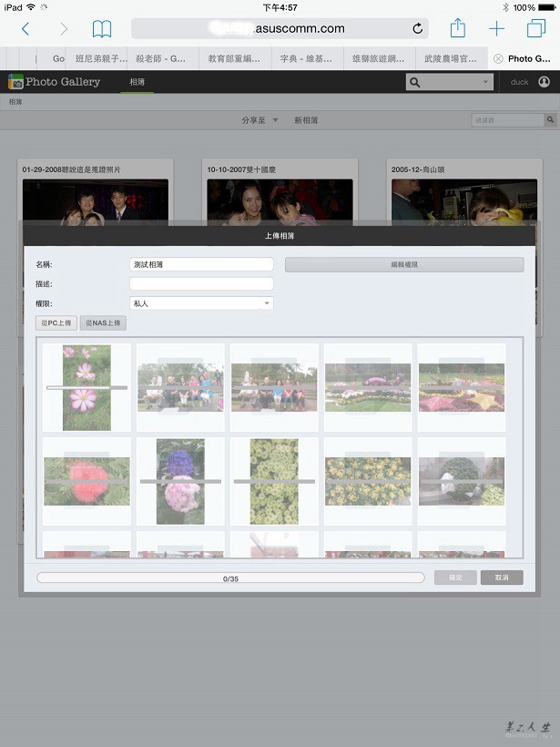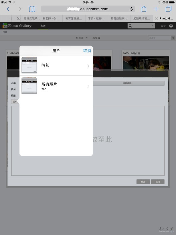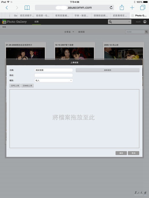 我們不但可以完成上傳的動作,也成功的建立了相本,由此可知ASUSTOR的Photo Gallery對iPad 2 mini的親和力還不錯,對於家中不善使用電腦的老人來說,能夠藉由使用行動裝置來完成新照片的上載真是一大福音!