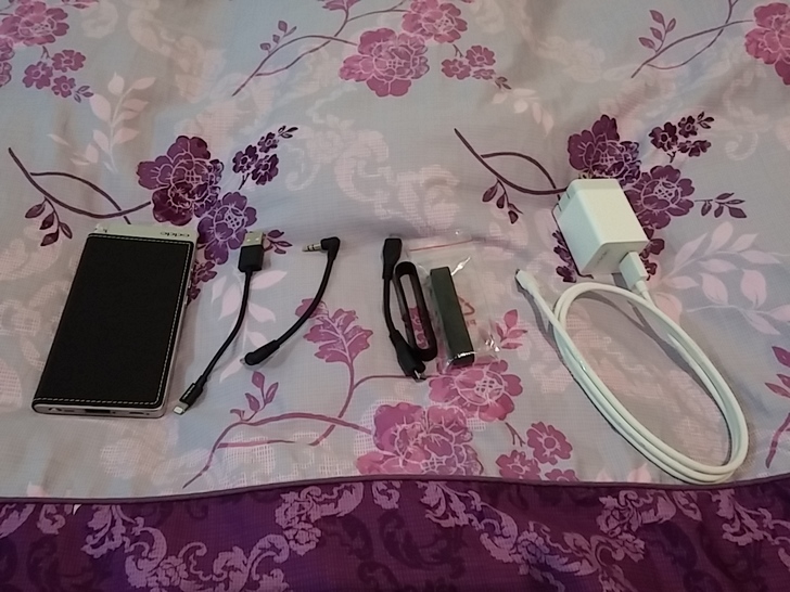 ▲ 配件包括充電器、橡皮筋、給Android、iPhone用的連接線,與3.5mm的對接線。