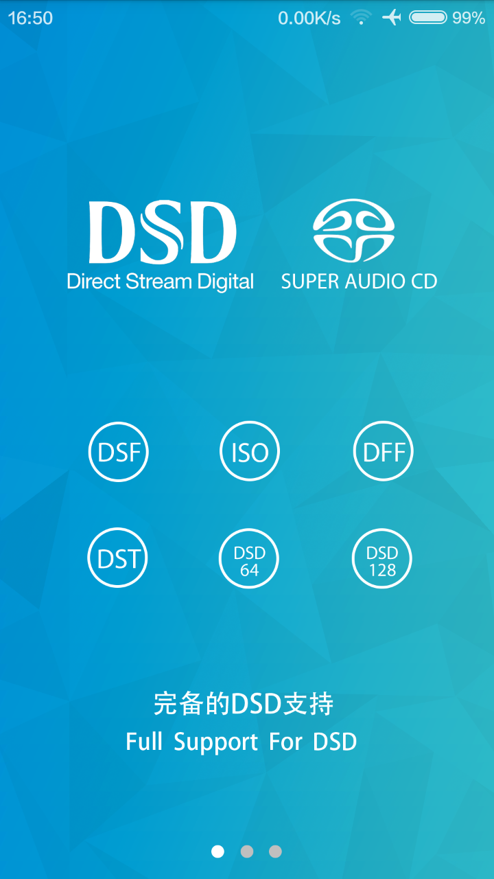 ▲ 下載後打開,也說明了可完整支持DSD的格式。不過,後來使用時,發現高流量的如DSD256、DSD128都無法播放,可能要付費後才可以。