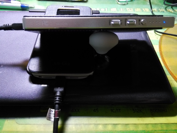▲ 使用Android手機,把二個micro-USB線接上,開關撥至正確位置(中間、位置B)