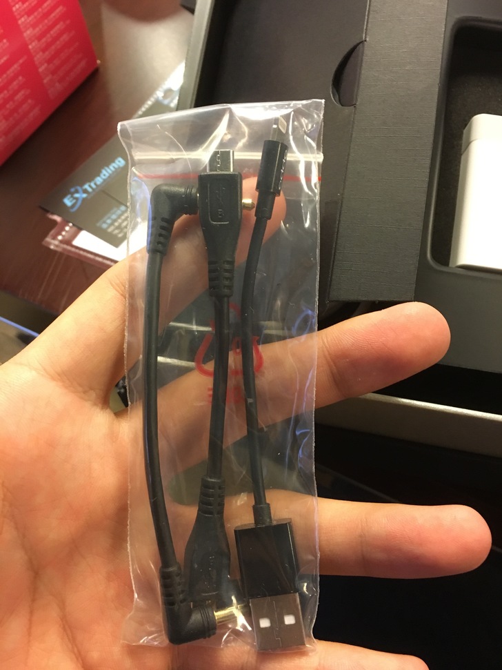 (內部線材一應俱全,micro USB 2 micro USB,lightning 2 USB,3.5mm公對公,以及兩條綁帶,以及因為本機支援,而附贈的閃充充電組)
