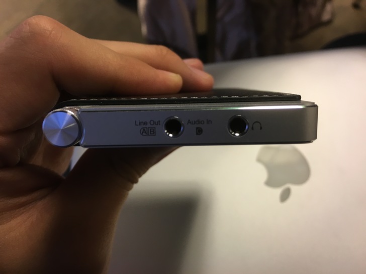 (頂方照片,左至右依序為音量樞紐、3.5mm input及一般耳機3.5mm output)