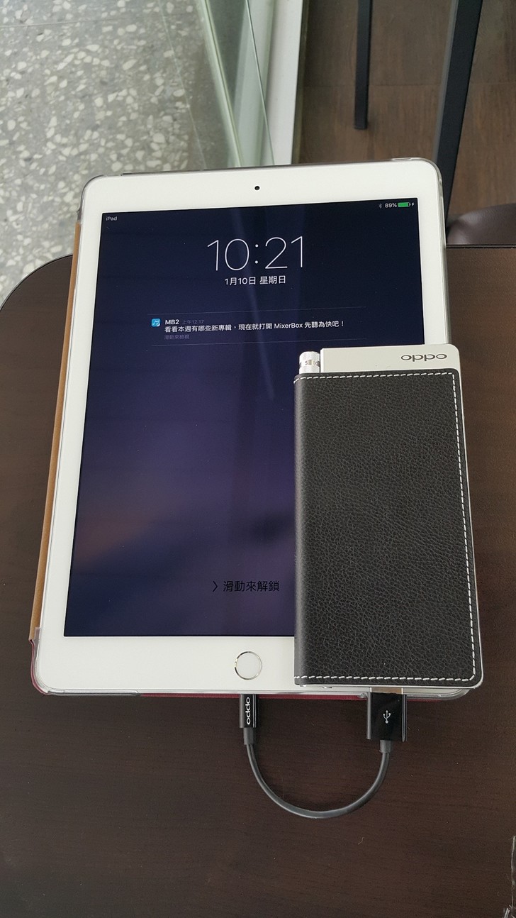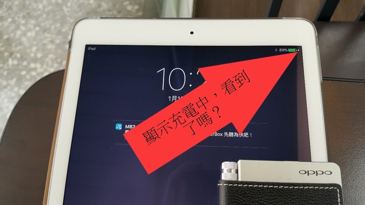 看到了嗎?。iPad Air 2‎上顯示的是充電中。