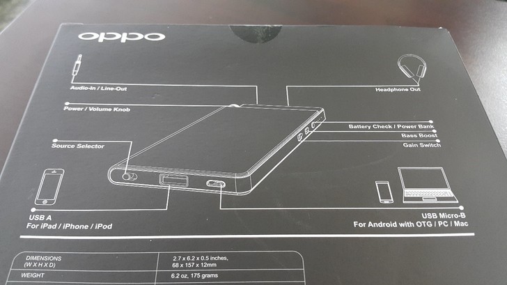雖然有另家耳擴也有行動電源的功能(因為這些分析有批評到別的公司,所以就不說公司名稱及型號了),但它的電量並沒有OPPO HA-2大,別以為它電量比較小,可能是因為它比較輕薄,那就錯了,這家耳擴的重量還比OPPO HA-2重。