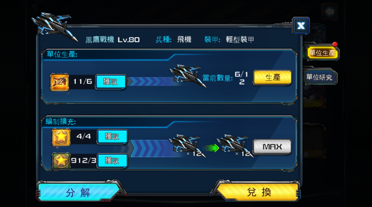 四、生產單位時需要消耗對應的圖紙哦,目前每種科技單位最多生產12個