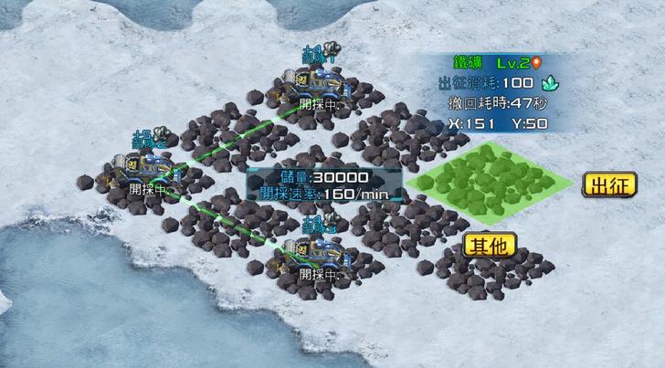 2、採礦:出征到一個礦點,您的不對將開採資源,當部隊采滿資源(採集資源數量達到負載上限),它將自動捎帶資源返回。