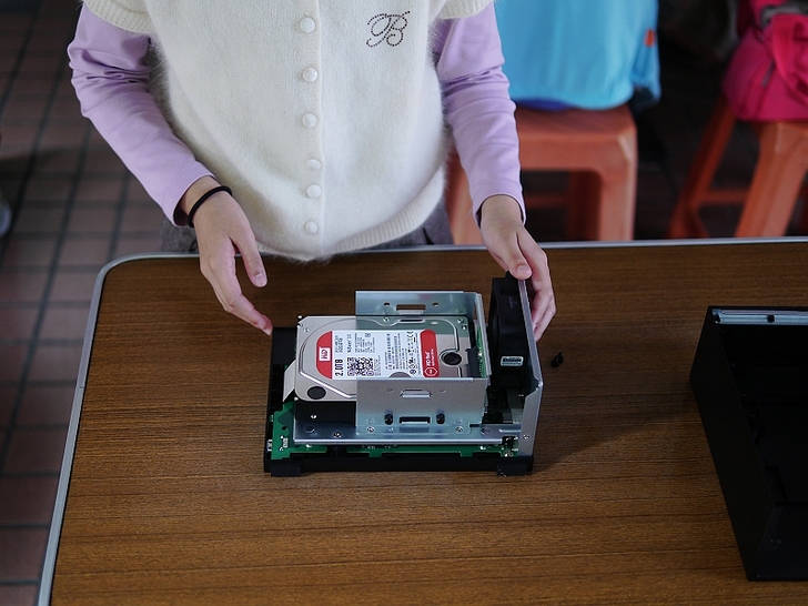 這邊以小朋友來親自體驗組裝,連小朋友都能輕鬆組裝了,那代表ASUSTOR AS3102T的免螺絲設計的非常成功。