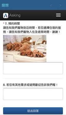 預約也可以避免在電話中和客人解釋不清的困擾,透過文字,客人更直接知道我們可以提供什麼服務。除了logo,連問題也可以放圖片,我就不客氣地又放了幾張可愛的圖,幸好看到別人分享,才知道還有這種App,對小店家來說真的簡單又實用。