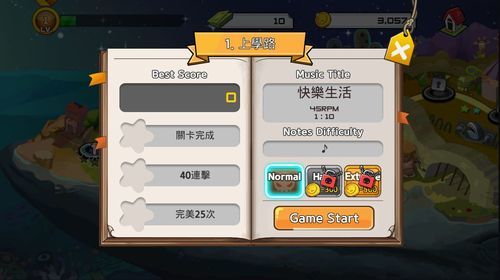 終於要開始進行我們DJ Honku的音樂之旅。遊戲關卡的前進方式是只要順利通關就會解鎖下一個關卡,當然每關的音樂和難度也都不懂。不過身為一個才剛剛從新手訓練出來的新手DJ當然就要先從簡單的關卡開始。