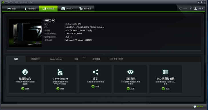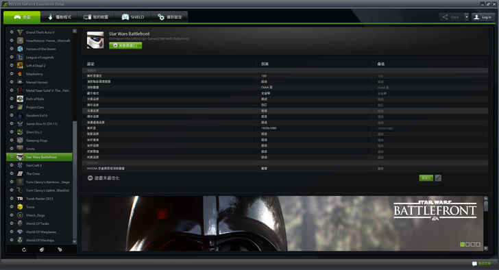 以上遊戲畫面與流暢度的測試在1920*1080的解析度下都表現得相當不錯,相信GTX960也應能夠跑穩60,如果你剛好是NVIDIA的顯示卡,不知道設定要怎樣使用操作,可以使用強大的GeForce Experience來進行遊戲最佳化設定。