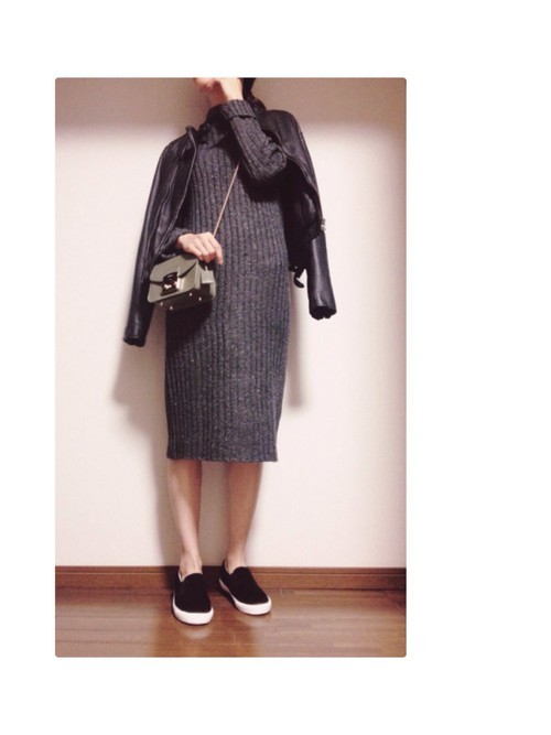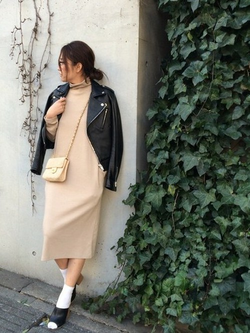 這種一件式單品不僅省去搭衣服的困擾,穿起來又都很舒服,但有時候因為剪裁的關係上半身看起來會垮垮的,這時候套件短版騎士外套在外面就完全解決。
