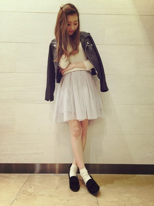 不要再問我為何外套不好好穿著,姐就是這麼帥!當然如果不是帥氣路線的女孩們也可以在下身的部分選擇紗裙,打造一股甜美率性的衝突感。