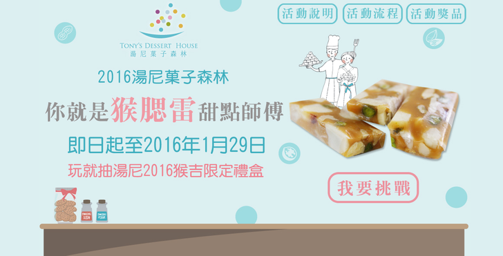 上次聖誕節抽到湯尼菓子森林100元的購物金,感覺中獎機率蠻高的耶~~~ 剛剛刷FB發現又有活動了,玩遊戲拿禮盒耶~~~ http://2016year.tonybakery.com.tw/ 希望這次又可以抽到~~~我想吃南棗核桃糕和乳加糖!! 讚 收藏 快速回應 引言回應