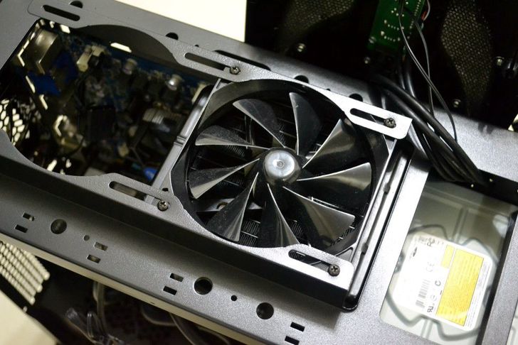 ↑在上方的部分有預留空間,可以安裝風扇或是長達240mm的水冷排,並且採用滑軌式螺絲孔的設計,可以配合安裝的螺絲孔距微調安裝的位置