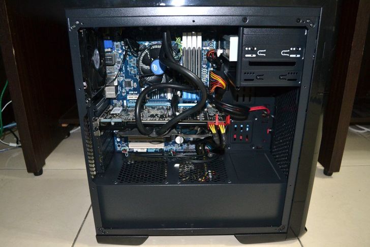 ↑電源的部分採用下置的設計,並且機殼下方墊的也夠高,確保PSU能夠有足夠的進氣空間。在後出風風扇採用一枚12公分的風扇。