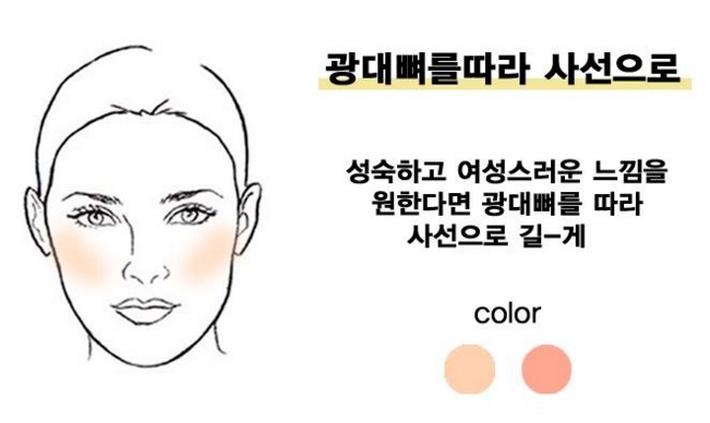 上腮紅位置:臉頰骨的沿線至鎖骨