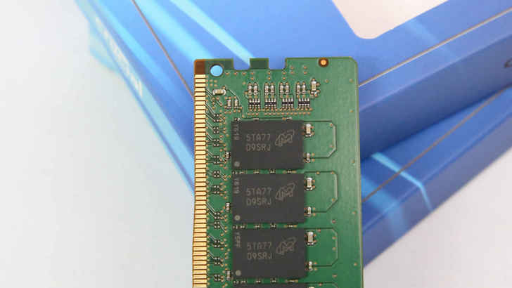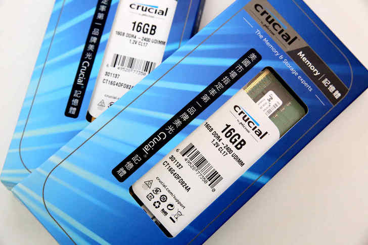 Crucial 16GB DDR4-2400是由16顆自家美光顆粒所組成的(雙面)。