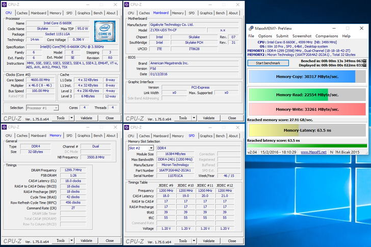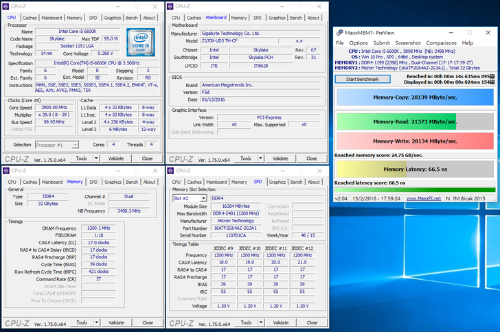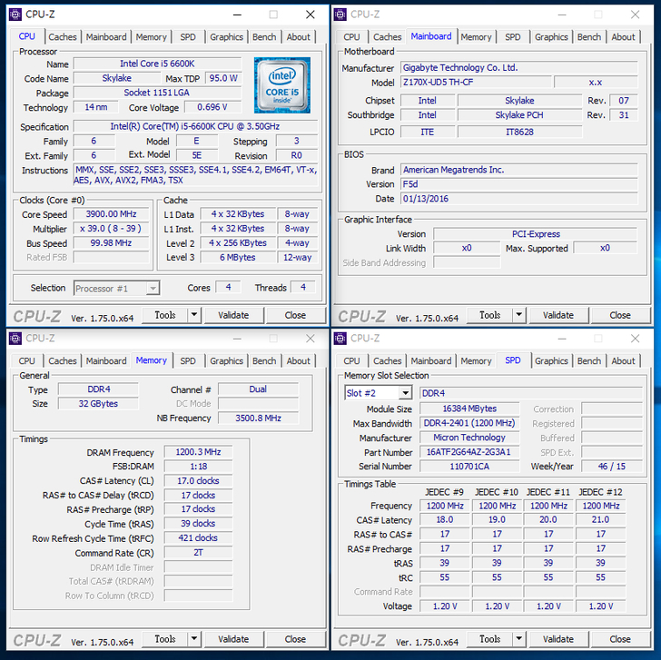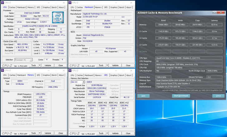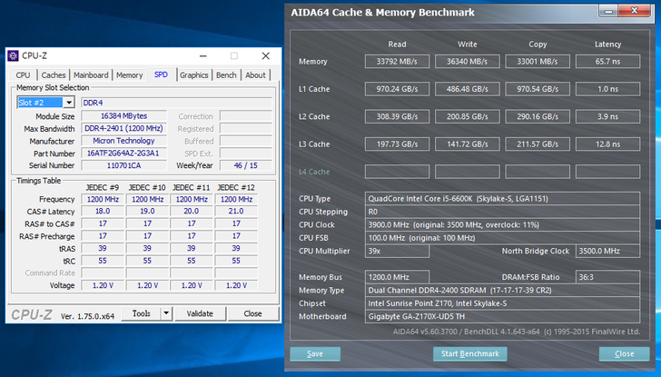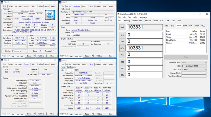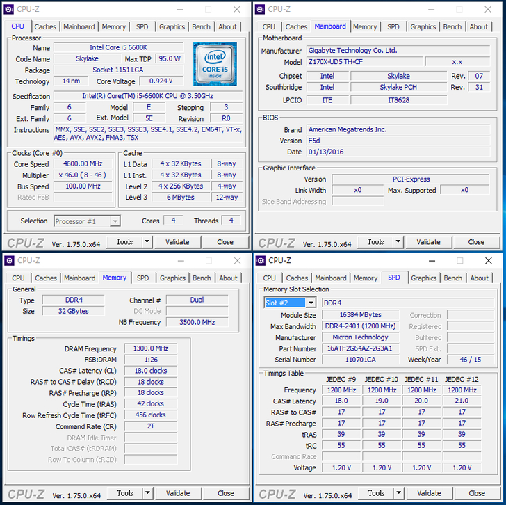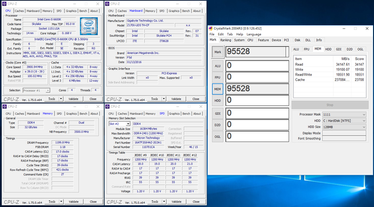 安裝 2 條 Crucial 16GB DDR4-2400 雖然無支援 X.M.P 技術,但在Gigabyte Z170X-UD5 TH主機板上就直接調整好到定位,直接以2400MHz速度來運作。